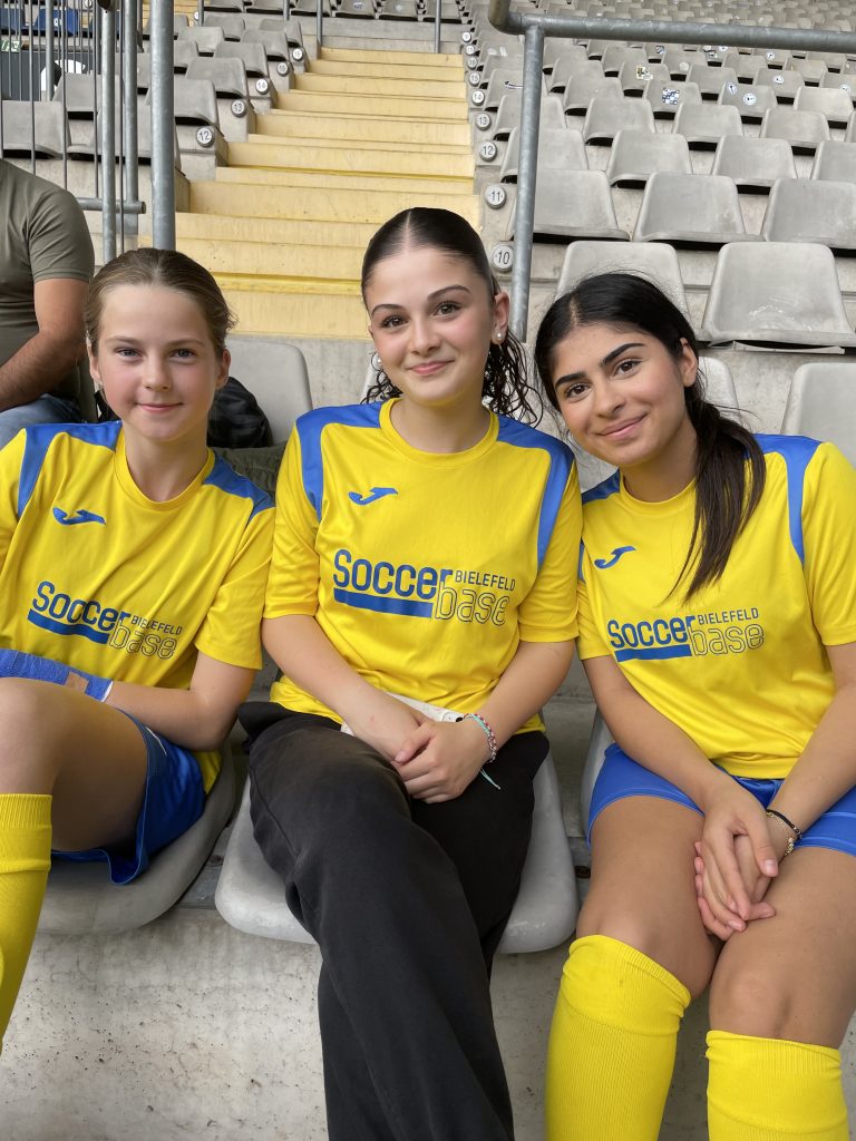 Am Freitag, den 19. September, konnte unser Mädchenteam aus den Jahrgängen 8 und 9 – Johanna, Nupel und Alicia – den Sieg der Street Soccer Tour in der Schüco Arena feiern. Schon in der schulinternen Vorrunde vor den Sommerferien hatten sie sich souverän gegen die anderen Teams durchgesetzt.